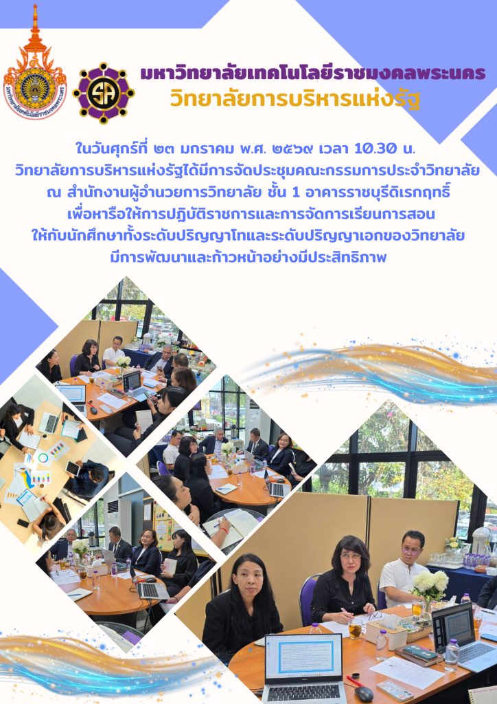 ในวันศุกร์ที่ ๒๓ มกราคม พ.ศ. ๒๕๖๙ เวลา 10.30 น. วิทยาลัยการบริหารแห่งรัฐได้มีการจัดประชุมคณะกรรมการประจำวิทยาลัยฯ